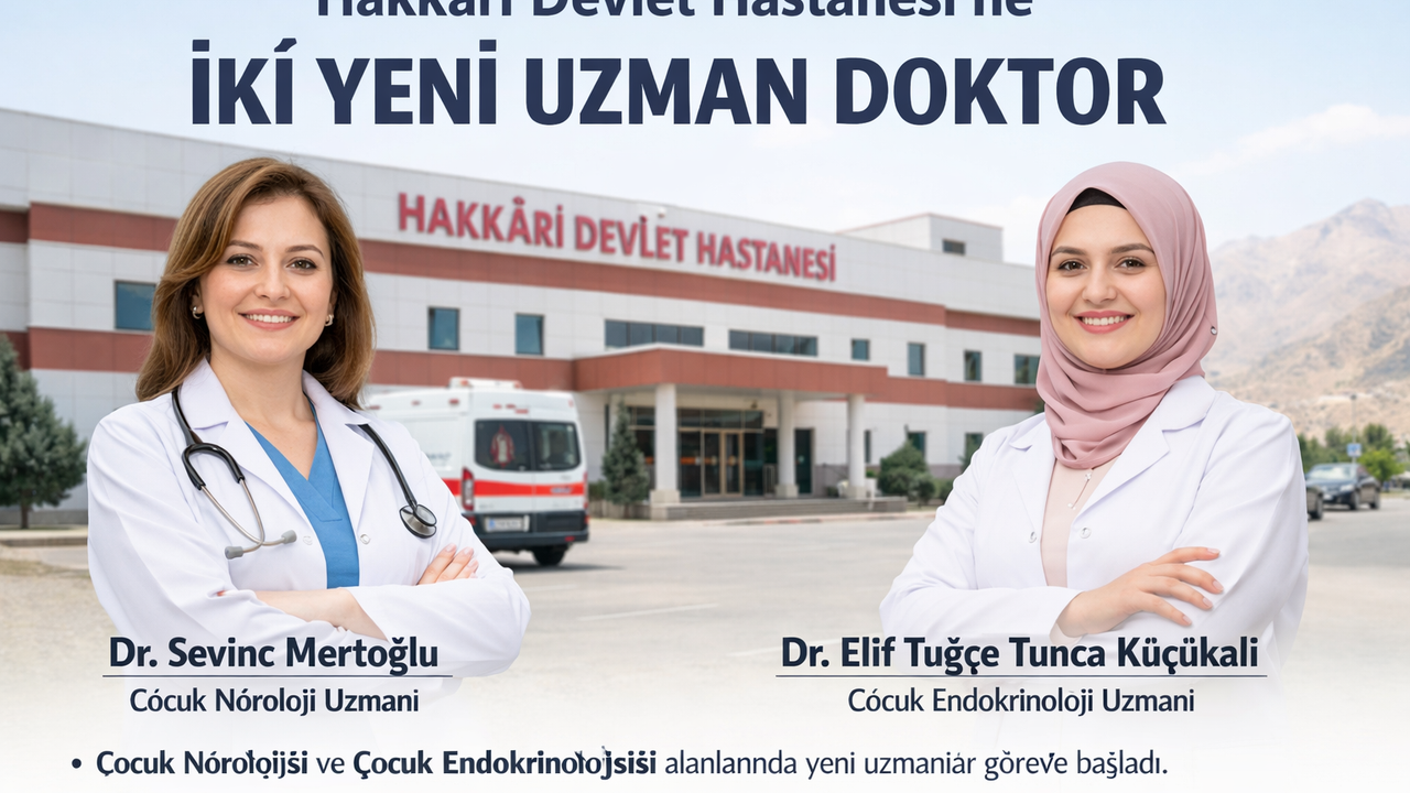 Hakkâri Devlet Hastanesi, sağlık hizmetlerinin güçlendirilmesi kapsamında uzman hekim kadrosunu genişletmeye devam ediyor. Hastaneye iki önemli branşta uzman doktorun atanmasıyla özellikle çocuk hastalara yönelik sağlık hizmetlerinde önemli bir boşluk daha dolduruldu.