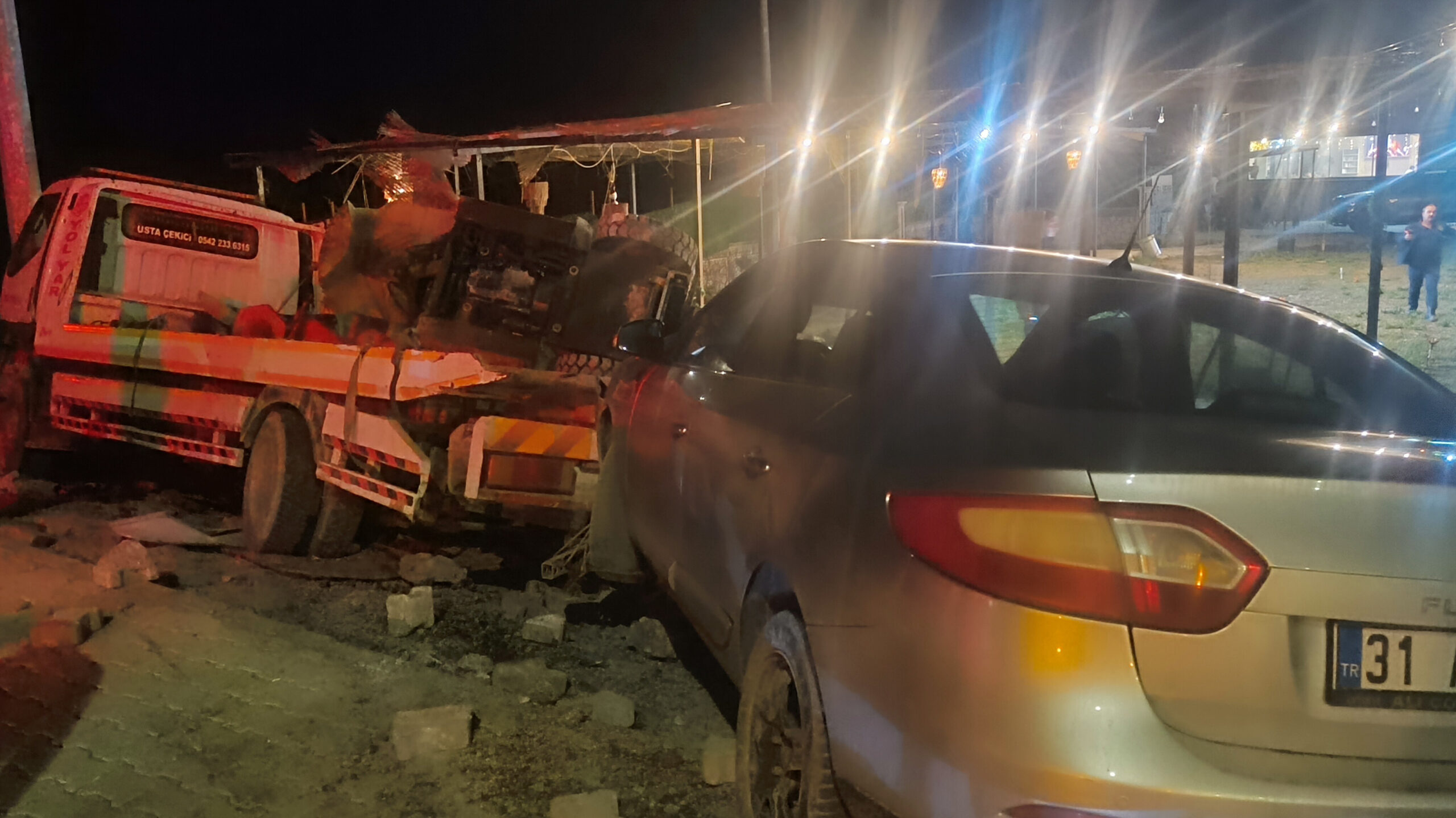Edinilen bilgilere göre, üzerinde forklift bulunan ve arkasında bir otomobil çeken oto kurtarıcı, seyir halindeyken freninin patlaması sonucu kaza yaptı. Kontrolden çıkan araç yoldan çıkarak savrulurken, yaklaşık 100 metrelik uçuruma düşmeden son anda durabildi.