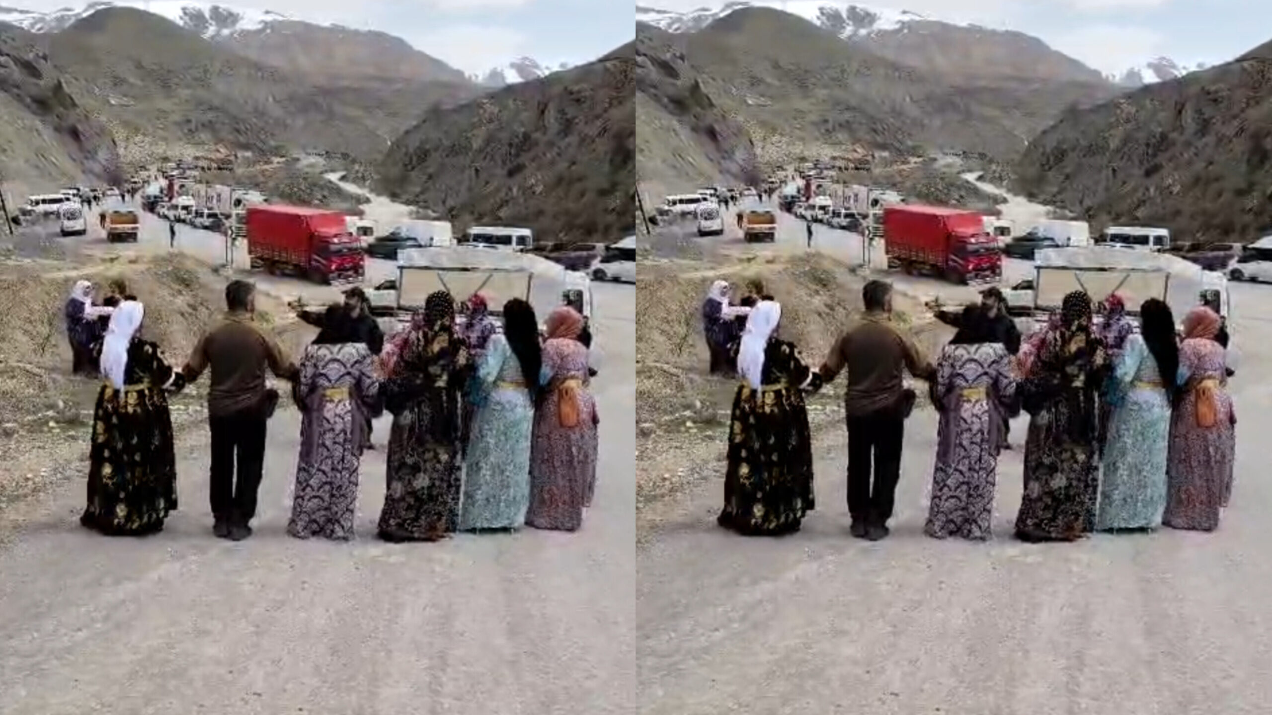 Edinilen bilgilere göre, Hakkâri’den Van’a nişan töreni için yola çıkan bir grup vatandaş, yolun kapalı olması nedeniyle bekleyişe geçti. Bekleme süresinin uzaması üzerine vatandaşlar, durumu eğlenceye çevirerek yol ortasında halay çekmeye başladı.