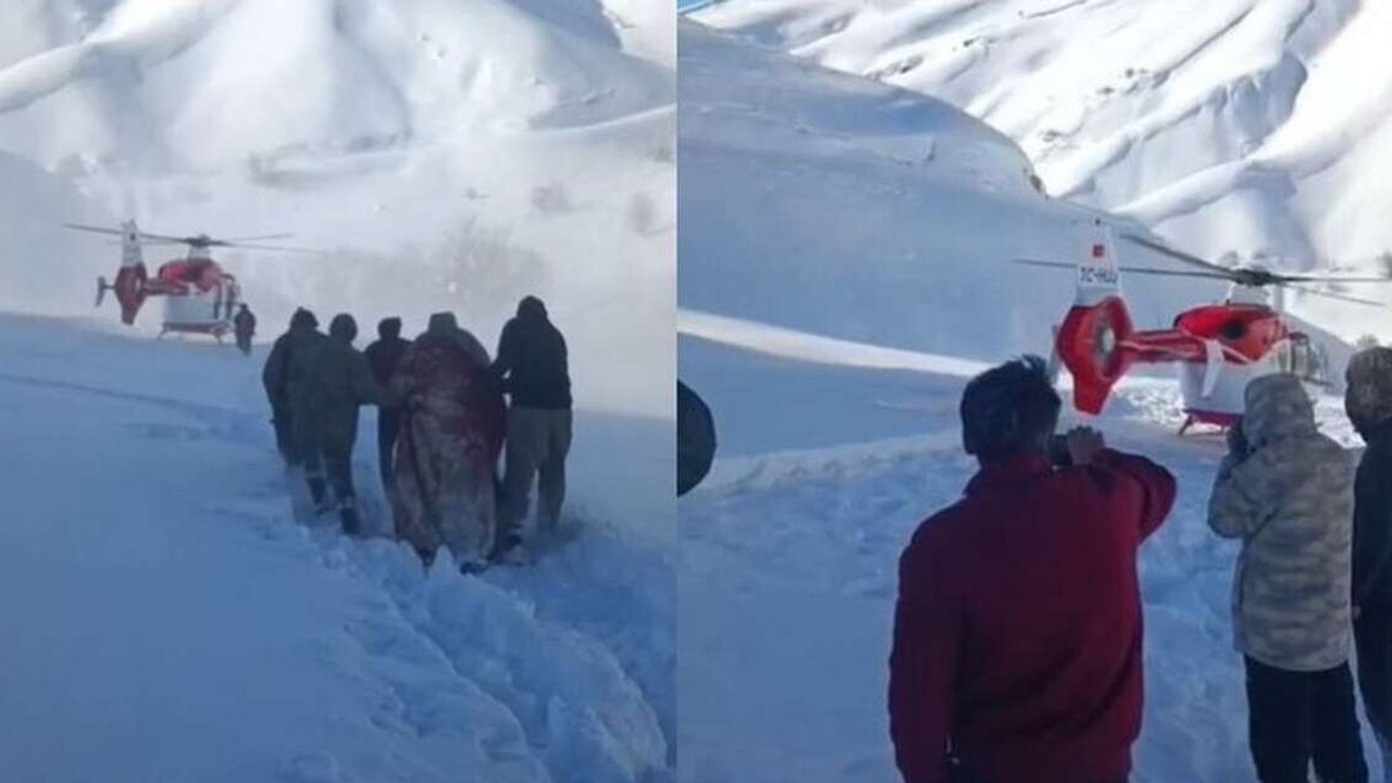 Hakkari’nin Şemdinli ilçesine bağlı Alan Köyü’nde, kar nedeniyle kara ulaşımının mümkün olmadığı bölgede bulunan 25 yaşındaki 8 aylık hamile hasta için helikopter ambulans sevk edildi.
