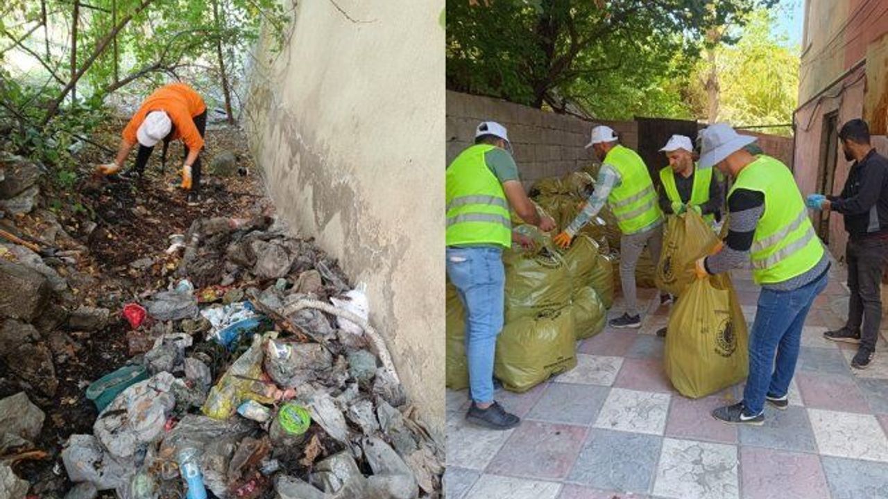 Hakkari’nin Bulvar Caddesi üzerinde bulunan binaların ara boşluğunda yaklaşık 1,5 ton çöp çıkartıldı.