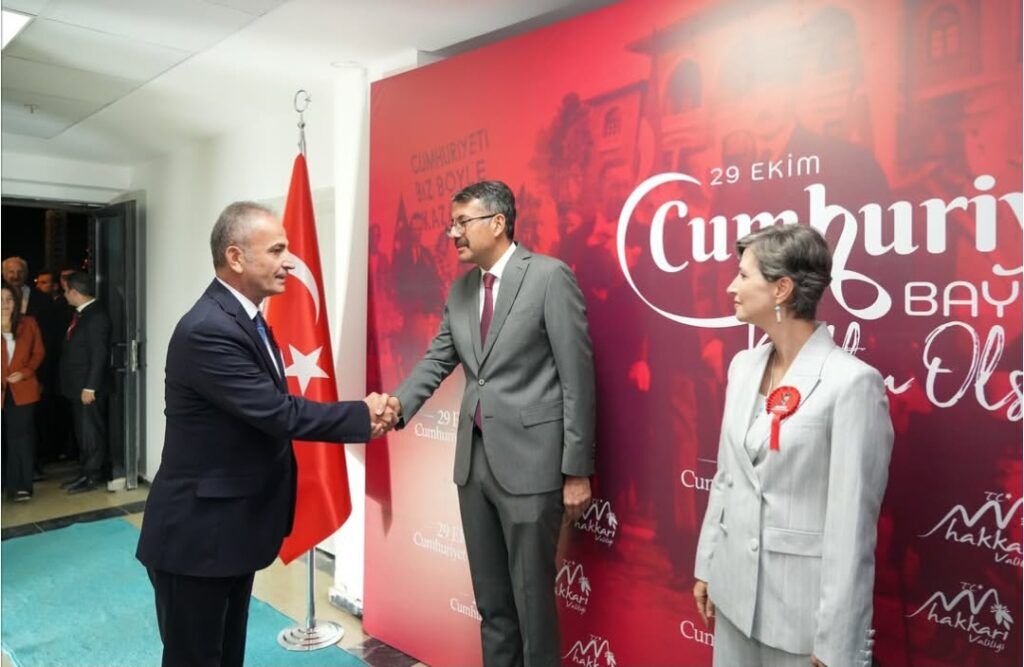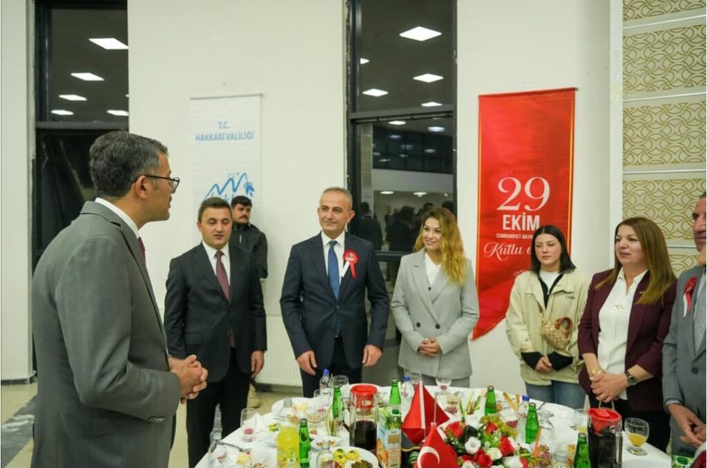 Cumhuriyetimizin 102. kuruluş yıl dönümü, Hakkâri Öğretmenevinde düzenlenen görkemli bir resepsiyonla kutlandı. Hakkâri Valisi Ali Çelik’in ev sahipliğinde gerçekleşen programa; il protokolü, siyasi parti temsilcileri, kamu kurum ve kuruluşlarının yöneticileri, sivil toplum örgütleri, meslek odaları, kooperatif temsilcileri, kanaat önderleri ve basın mensupları yoğun katılım gösterdi.
