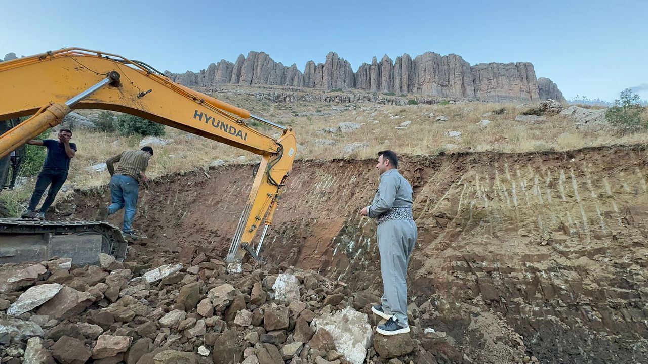 Bölgede kazı çalışmaları devam ederken, Derecik Belediye Başkanı Avukat Hasan Dinç, bölgeyi ziyaret ederek incelemelerde bulundu ve yetkililerden bilgi aldı.