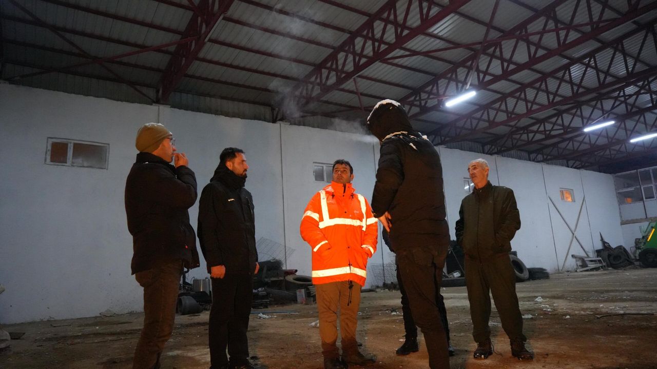 Yoğun kar birikiminin garajda çökme riskine yol açabileceği değerlendirilerek, belediyeye ait tüm iş makineleri ve hizmet araçları kontrollü bir şekilde garajdan çıkarıldı.