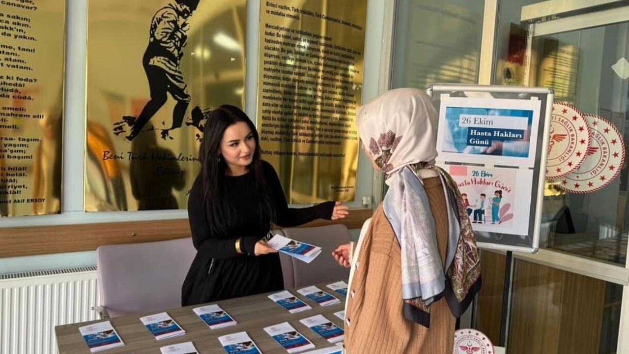 Hastane yönetimi tarafından organize edilen programda, sağlık hizmetlerinde hasta haklarının korunması, hasta memnuniyetinin artırılması ve sağlık çalışanları ile hastalar arasındaki iletişimin güçlendirilmesi konularında farkındalık oluşturmak amacıyla bilgilendirici broşürler dağıtıldı.