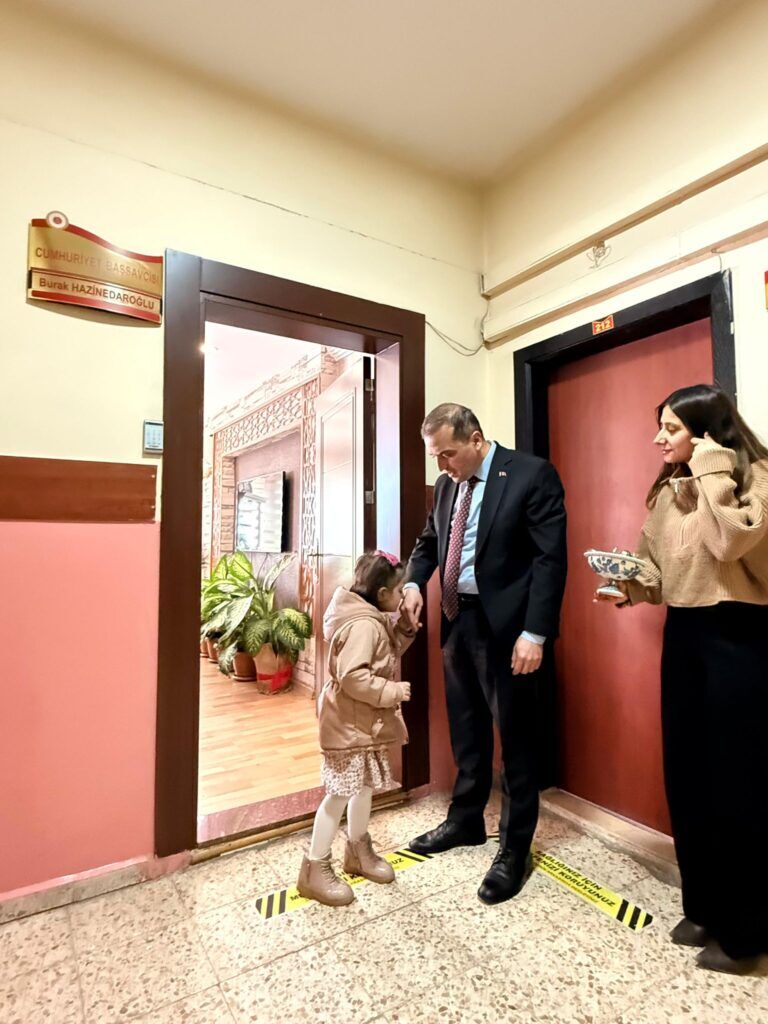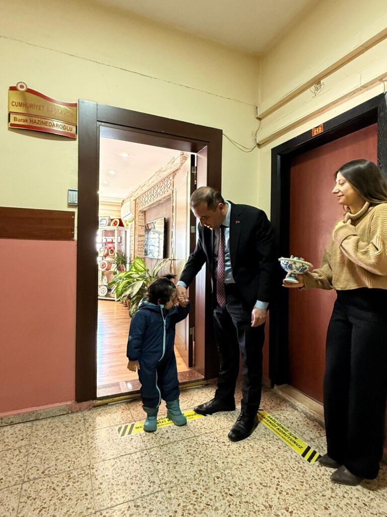 Hakkari’de faaliyet gösteren Düşler Dünyası Gündüz Bakımevi yönetimi, öğretmenler ve minik öğrenciler, bayram ziyareti kapsamında Hakkari Cumhuriyet Başsavcısı Burak Hazinedaroğlu’nu makamında ziyaret etti.