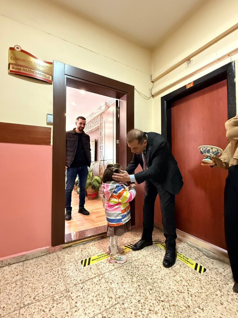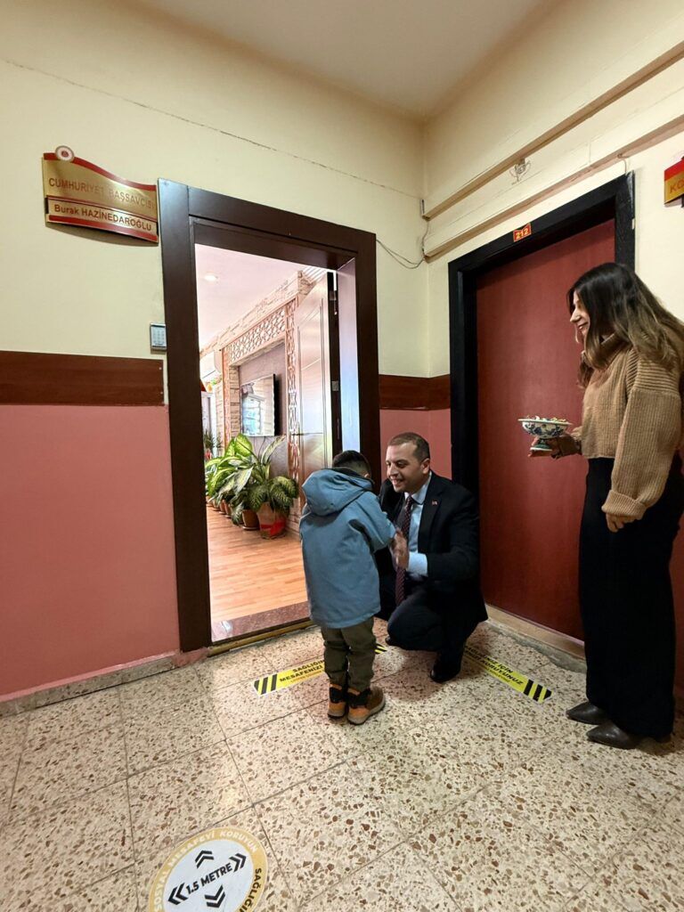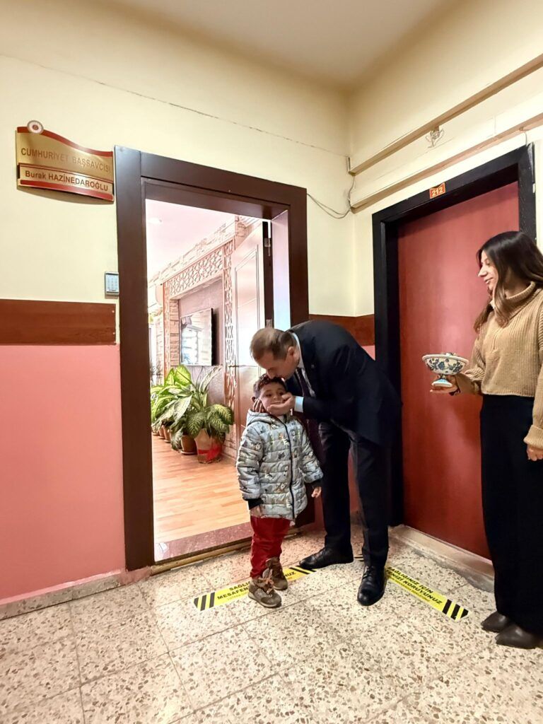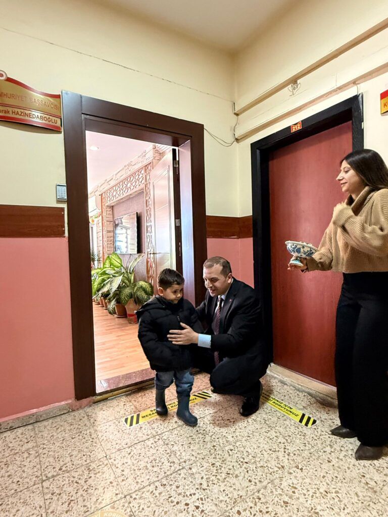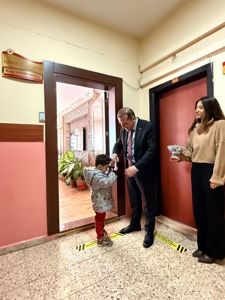 Ziyaretten duyduğu memnuniyeti dile getiren Başsavcı Burak Hazinedaroğlu, minik misafirleriyle yakından ilgilenerek öğrencilere çeşitli hediyeler takdim etti.
