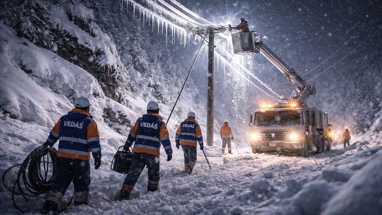 Zorlu kış şartlarına rağmen Vangölü Elektrik Dağıtım A.Ş. (VEDAŞ) ekipleri 7 gün 24 saat esasına göre sahada görev yapıyor. Karla kaplı yolları aşarak en ücra noktalara ulaşan ekipler, dondurucu soğukta direk başında saatlerce çalışarak enerji hatlarını yeniden ayağa kaldırıyor.