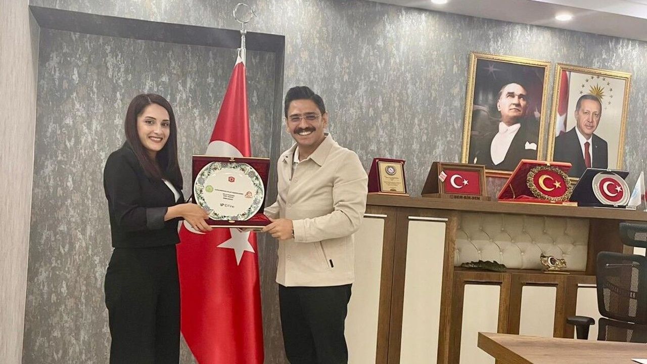 HAKAPAD Kadın Kolları Başkanı Güneş Temel, Hakkari Vali Yardımcısı ve Belediye Başkan Yardımcısı Tayyar Emre Mahmutoğlu’nu makamında ziyaret ederek desteklerinden dolayı teşekkür plaketi takdim etti.