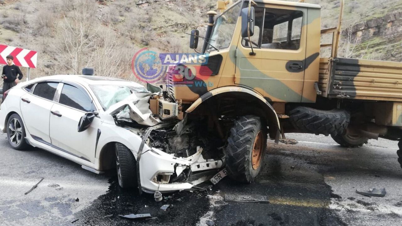 Hakkâri–Çukurca karayolunda askeri araç ile bir otomobilin kafa kafaya çarpışması sonucu meydana gelen trafik kazasında 1 kişi yaralandı.