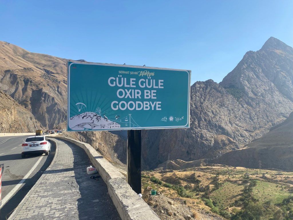 Hakkari çıkışında ise “Serhat Şehri Hakkari, Güle Güle, Oxır be, Goodbey” yazıları bulunuyor.