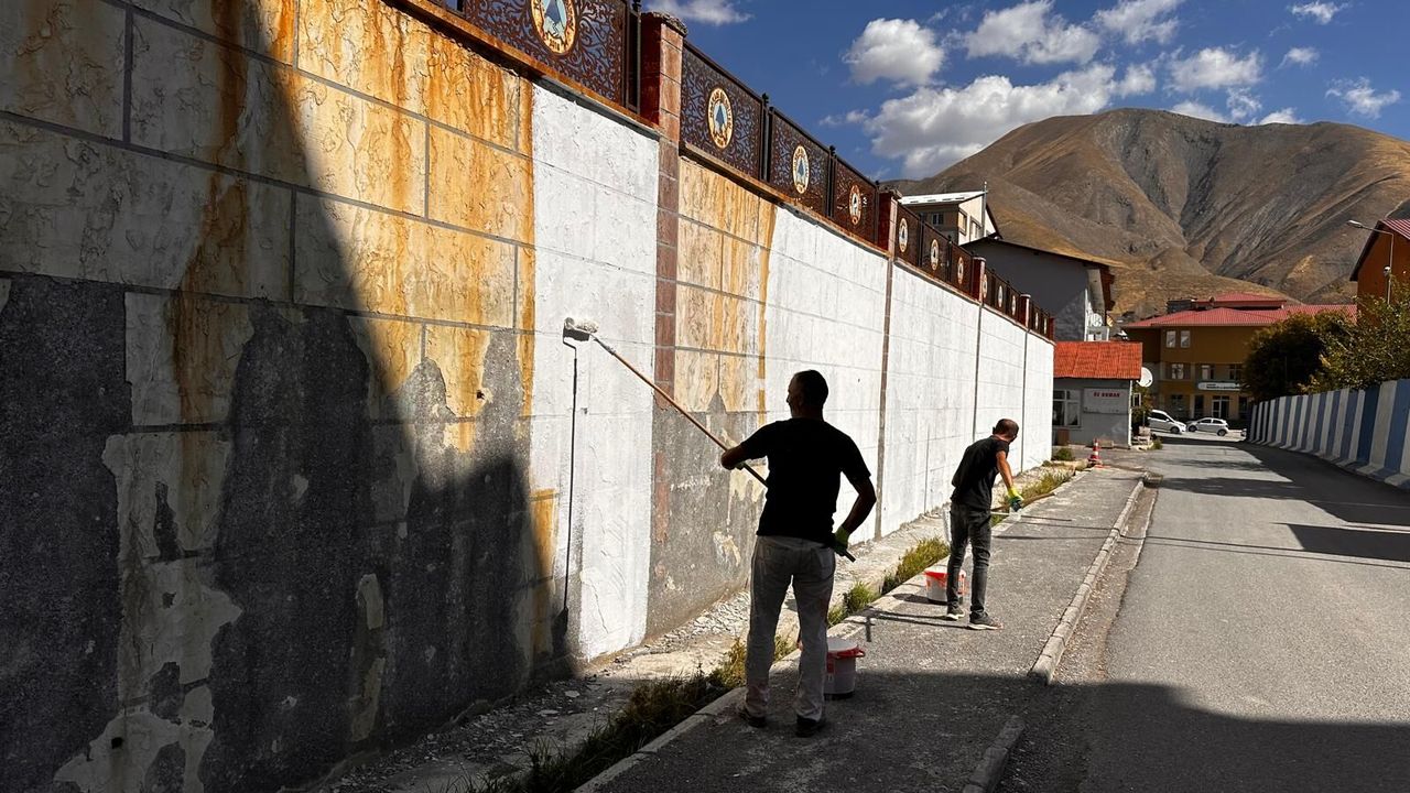 Hakkari Belediyesi Park ve Bahçeler Müdürlüğü ekipleri tarafından kendin birçok noktasında dış duvar tamir ve boyama çalışmaları devam ediyor.