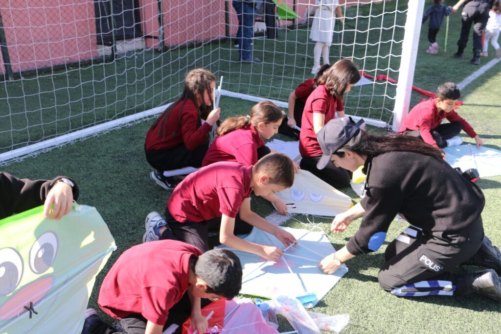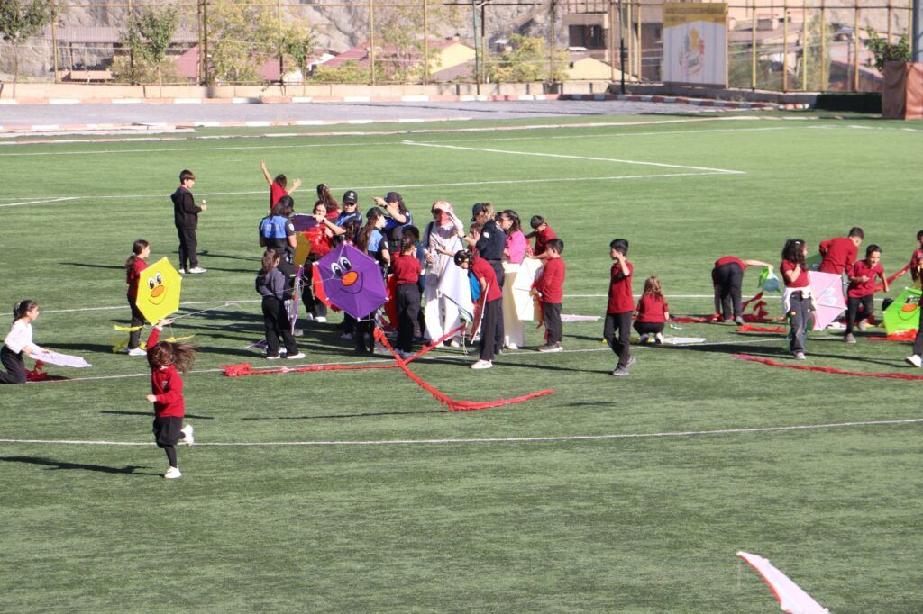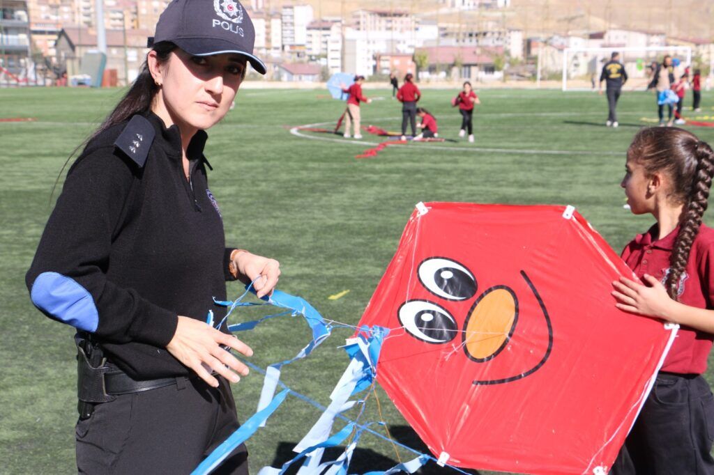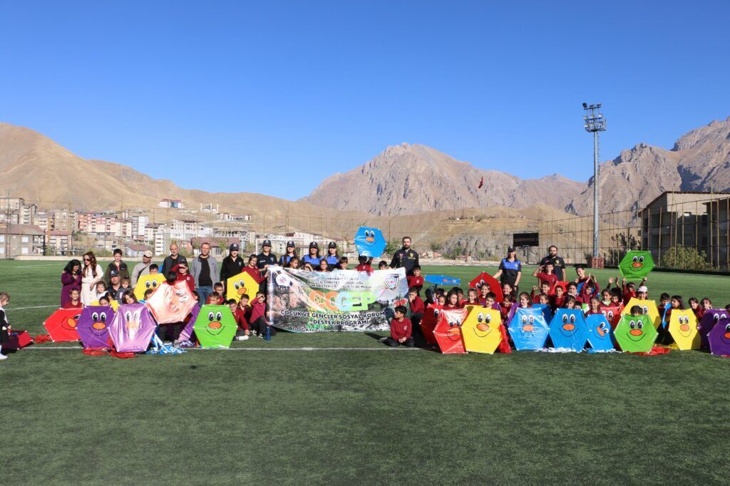 Hakkari İl Emniyet Müdürlüğü, sadece güvenlik hizmetleriyle değil, toplumsal duyarlılığı artıran örnek projeleriyle de takdir topluyor. Toplum Destekli Polislik Şube Müdürlüğü tarafından yürütülen ÇOGEP “Doğan Güneşte Yeni Umutlar” projesi kapsamında, Cumhuriyet İlkokulu öğrencileri, seramik kursu öğrencileri ve ailelerinin katılımıyla Merzan Şehir Stadyumu’nda uçurtma etkinliği düzenlendi.