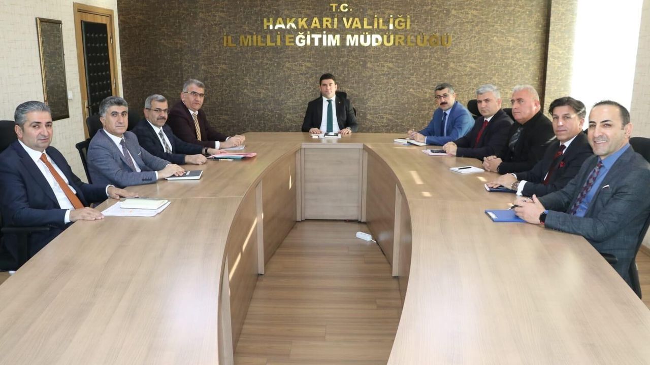 Toplantının ana gündem maddelerinden biri, ikinci dönemde yürütülecek eğitim-öğretim faaliyetleri oldu. Bu kapsamda, öğrenci başarısını artırmaya yönelik planlamalar, ders içi ve ders dışı etkinliklerin verimliliği, öğretmenlerin mesleki gelişim çalışmaları ve akademik başarıyı destekleyecek projeler detaylı şekilde masaya yatırıldı.Okulların Genel Durumu Gözden Geçirildi Toplantıda Hakkari genelindeki okulların fiziki ve akademik durumları da değerlendirildi. Okullarda sürdürülen bakım-onarım çalışmaları, donanım eksiklikleri, öğrenci-öğretmen sayıları, taşımalı eğitim hizmetleri ve kış şartlarına yönelik hazırlıklar hakkında kapsamlı bilgiler paylaşıldı. Özellikle eğitimde fırsat eşitliğini sağlama ve öğrencilerin daha iyi koşullarda eğitim almasını hedefleyen çalışmalar vurgulandı.
