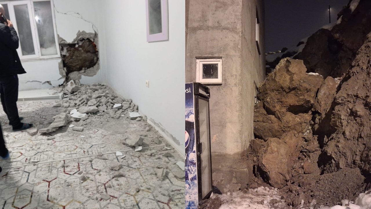 Hakkari merkezde etkili olan yoğun yağış, ciddi bir tehlikeyi beraberinde getirdi. Karşıyaka Mahallesi’nde, TOKİ konutları karşısında bulunan bir eve tepeden kopan büyük bir kaya parçası düştü. Yaşanan olay mahallede büyük korku ve paniğe neden oldu.