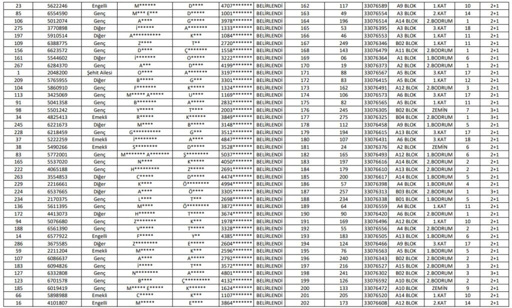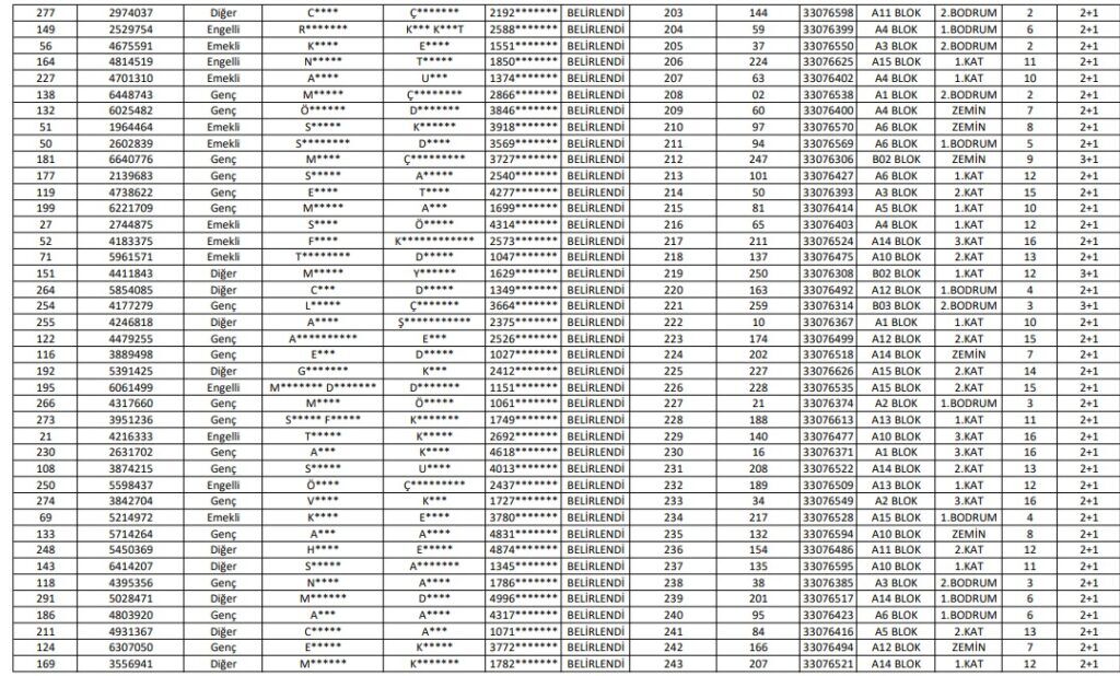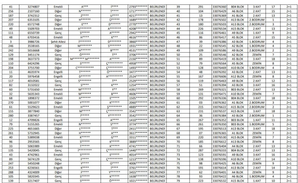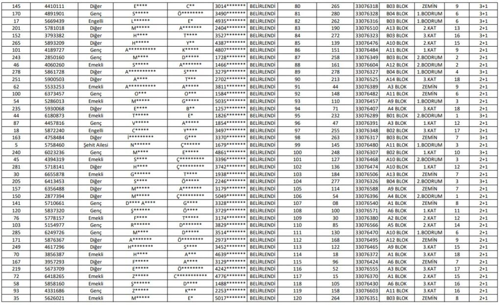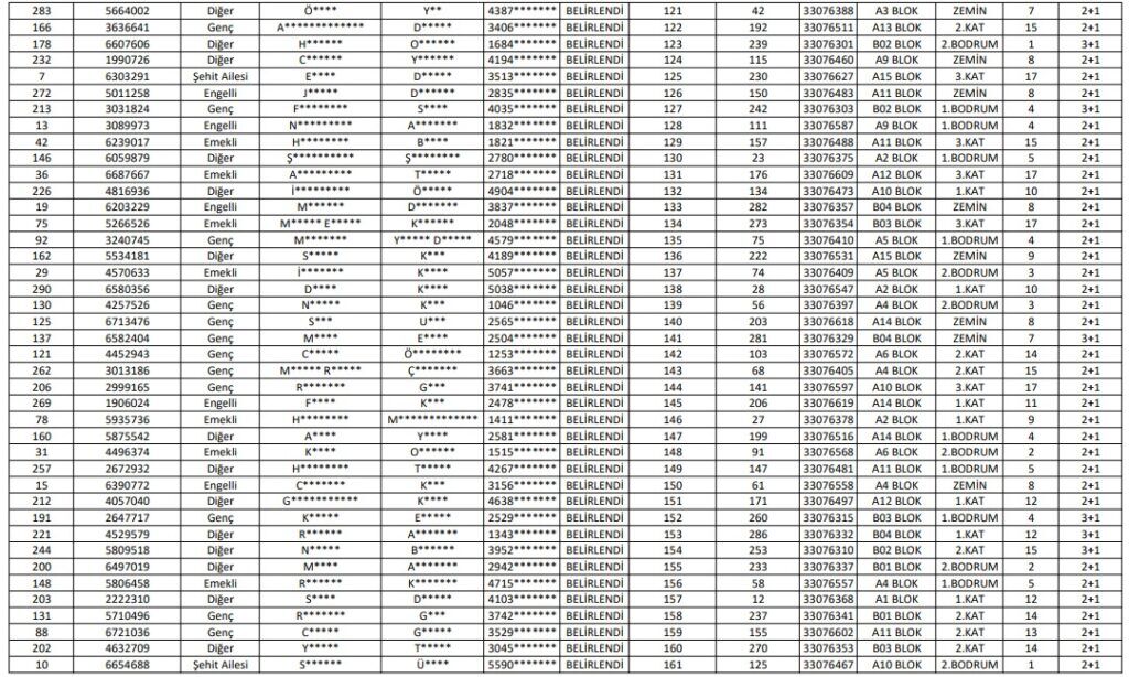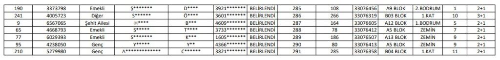 Noter huzurunda gerçekleştirilen kura sonucu, Hakkari Merkez Gazi Mahallesi’ndeki 2+1 ve 3+1 konutların tam isim listesi kamuoyuna açıklandı. Hak sahipleri için yeni bir ev umudu, bugün resmen gerçeğe dönüşmüş oldu.