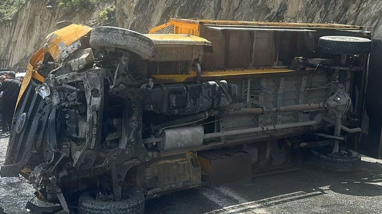 Öğle saatlerinde yaşanan kazada, henüz plakası ve sürücüsünün kimliği öğrenilemeyen kamyonet, sürücünün direksiyon hâkimiyetini kaybetmesi sonucu kayayolunda devrildi.