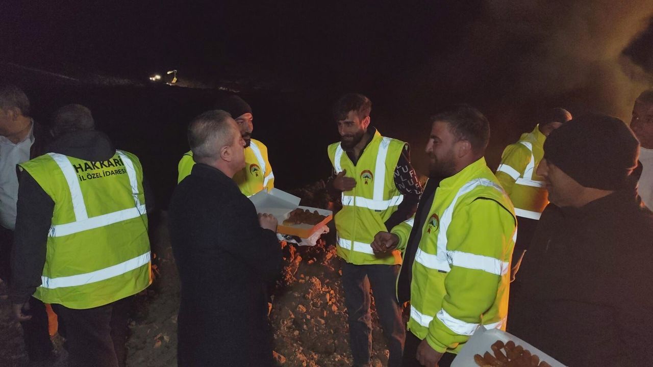 Gece saatlerinde de devam eden çalışmaları yerinde inceleyen AK Parti Hakkâri İl Başkanı Zeydin Kaya, sahada görev yapan ekiplerle bir araya geldi. Zorlu şartlarda görev yapan personelle sohbet eden Kaya, özverili çalışmalarından dolayı ekiplere teşekkür etti.