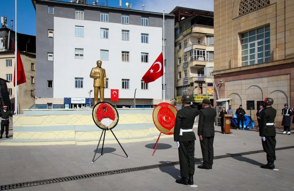 Tören, Hakkari Valiliği, Garnizon Komutanlığı, Hakkari Belediyesi ve Türkiye Harp Malulü Gaziler, Şehit, Dul ve Yetimleri Derneği Başkanlığı’nın çelenklerinin Atatürk Anıtı’na sunulmasıyla başladı. Çelenk sunma töreni, Vali Vekili Buğra Karadağ, Tümgeneral Ferat Vural, Vali Yardımcısı Tayyar Emre Mahmutoğlu ve Türkiye Harp Malulü Gaziler, Şehit, Dul ve Yetimleri Derneği Hakkâri İl Temsilcisi İbrahim Adıyaman’ın katılımıyla gerçekleştirildi.