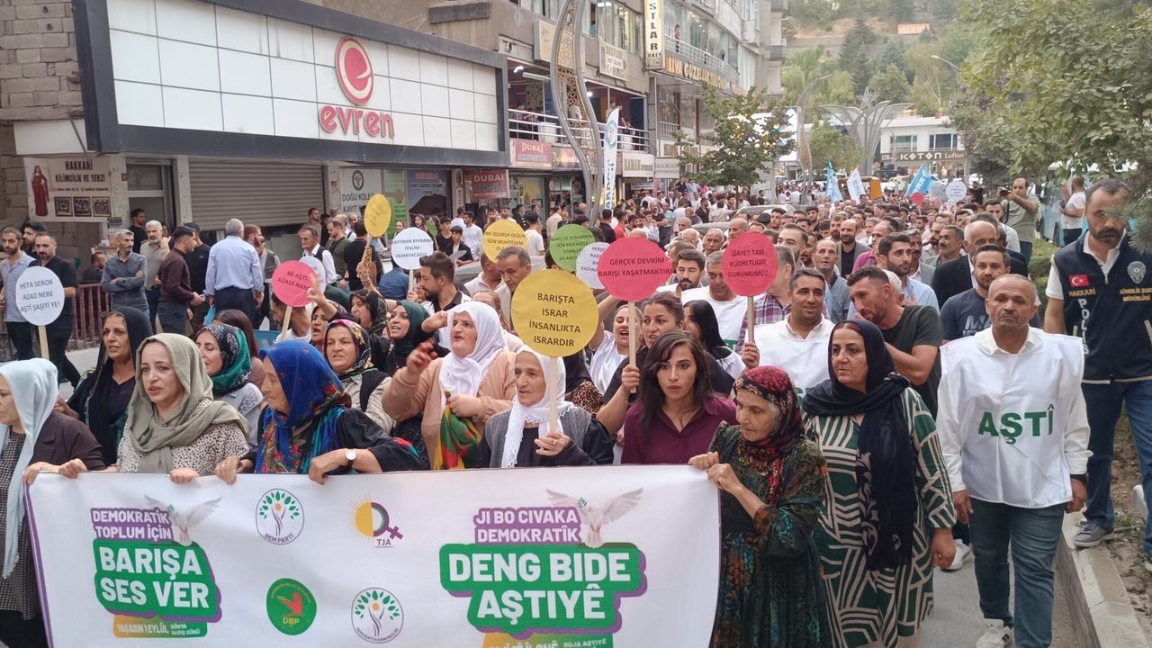 Hakkari DEM Parti İl Örgütü, 1 Eylül Dünya Barış Günü dolayısıyla yürüyüş düzenledi. Kutlamalara DEM Parti Hakkâri Milletvekili Onur Düşünmez, İl Genel Meclisi Eş Başkanları Feyyaz Dara ve Asiye Akgül, görevden alınan Belediye Eş Başkanı Viyan Tekçe, İl Eş Başkanları Behçet Kanat ve Evin Tan katıldı.