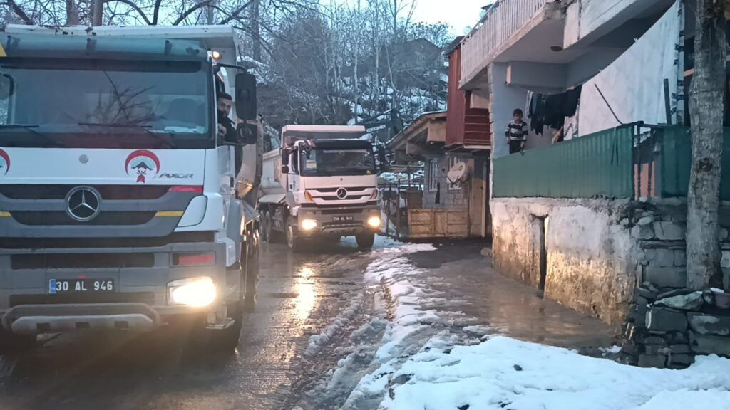 Vali Ali Çelik’in talimatları doğrultusunda Hakkâri İl Özel İdaresi ve Hakkâri Belediyesi ekipleri koordineli şekilde sahaya indi. Çamur nedeniyle kullanılamaz hale gelen yol, iş makineleri ve ekiplerin yoğun çalışmasıyla ilk etapta greyder yardımıyla temizlendi.
