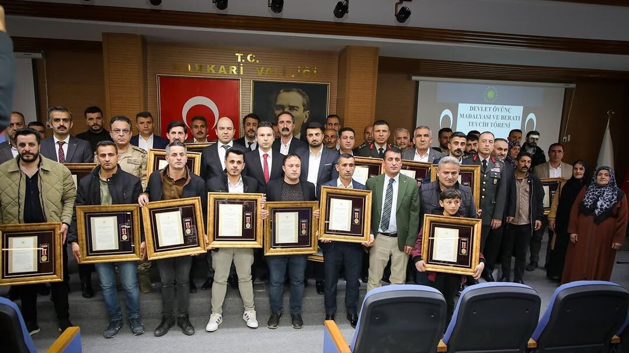 Cumhurbaşkanlığı tarafından Devlet Madalya ve Nişanları Yönetmeliği kapsamında hazırlanan Devlet Övünç Madalyaları ve Beratları Türkiye’nin 81 ilinde olduğu gibi Hakkari’de de sahiplerine ulaştırıldı Bu kapsamda Hakkari Valiliği Konferans Salonu’nda şehit ailelerine yönelik anlamlı bir tevcih töreni gerçekleştirildi