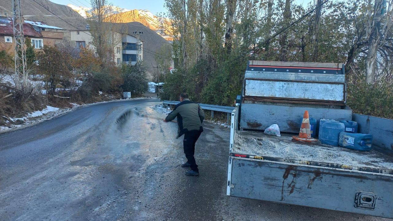 Hakkari’de havaların hızla soğumasıyla birlikte özellikle gece ve sabah saatlerinde etkisini artıran buzlanmaya karşı belediye ekipleri 7/24 sahada görev yapıyor. Kent genelinde ulaşımın aksamaması ve vatandaşların güvenli bir şekilde seyahat edebilmesi için tuzlama, yol temizleme ve güçlendirme çalışmaları yoğunlaştırıldı.