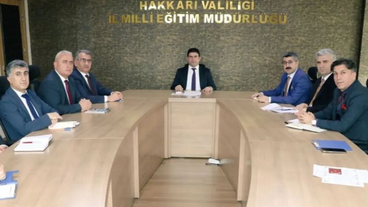 Hakkari İl Milli Eğitim Müdürlüğü tarafından düzenlenen haftalık değerlendirme ve koordinasyon toplantısı, İl Milli Eğitim Müdürü Nurettin Yılmaz başkanlığında gerçekleştirildi. Toplantıya Eğitim Müfettişleri Başkanı, İl Milli Eğitim Müdür Yardımcıları ve Şube Müdürleri katılım sağladı.