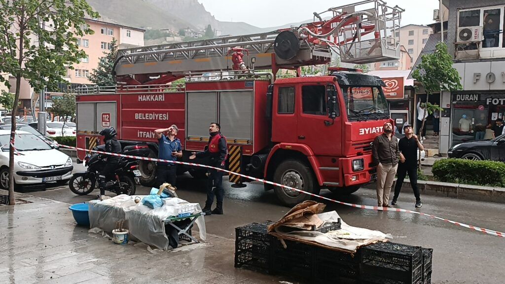Hakkari’de öğlenden sonra aniden bastıran sağanak yağış ve şiddetli fırtına, şehir merkezinde hayatı olumsuz etkiledi. Bulvar Caddesi üzerinde bulunan çok katlı bir binanın çatısı, kuvvetli rüzgarın etkisiyle yerinden sökülerek çevreye savruldu. Çatı üzerinde bulunan bir baz istasyonu cihazı da fırtınadan zarar gördü ve çevredeki vatandaşlar için tehlike oluşturdu.