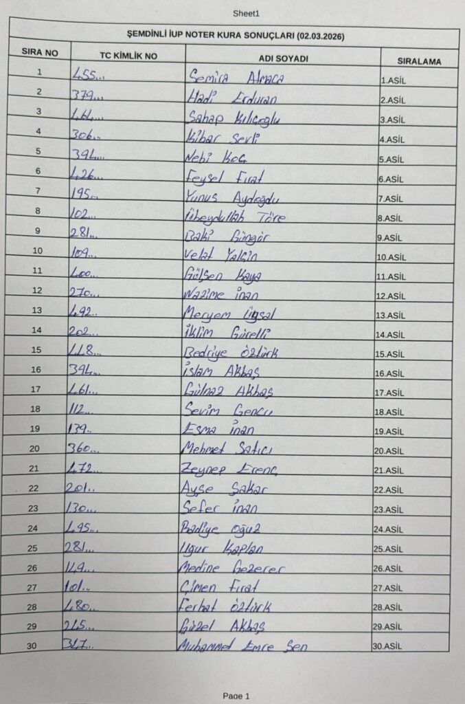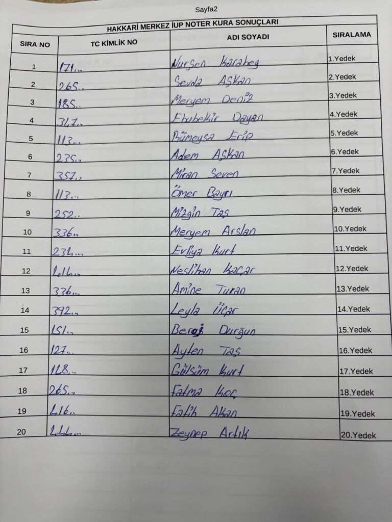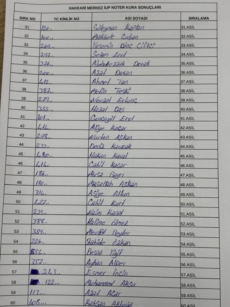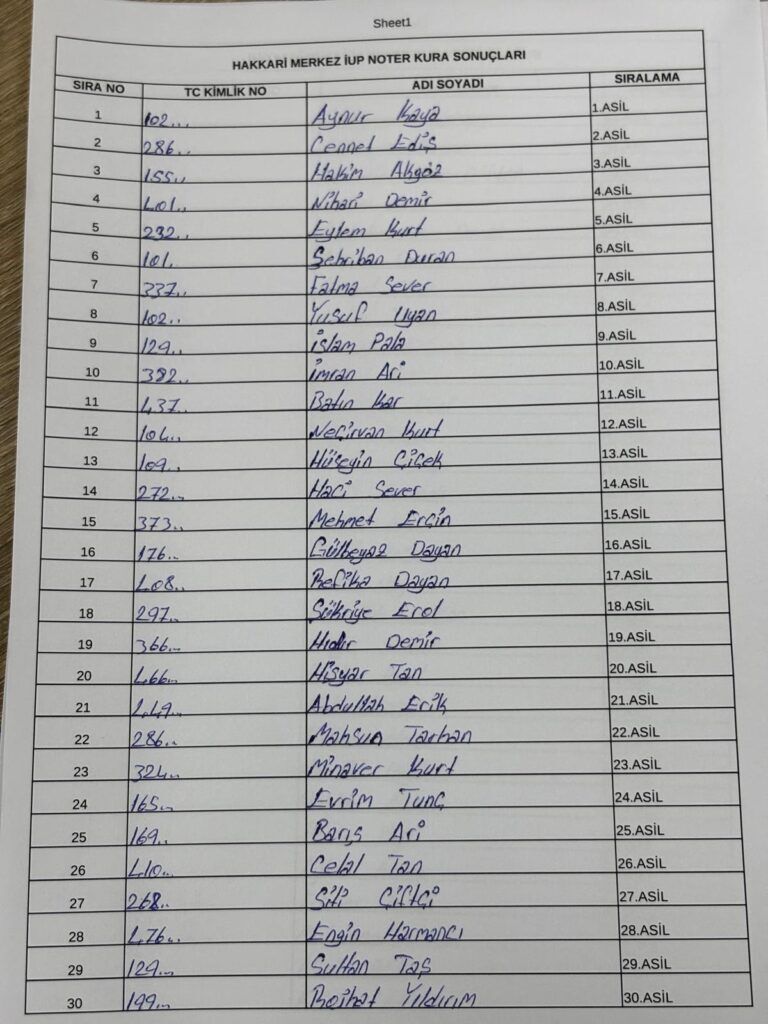 Hakkâri merkezde kura sonucu ismi çıkan vatandaşların listesi ilgili kurumlar tarafından kamuoyuyla paylaşıldı.