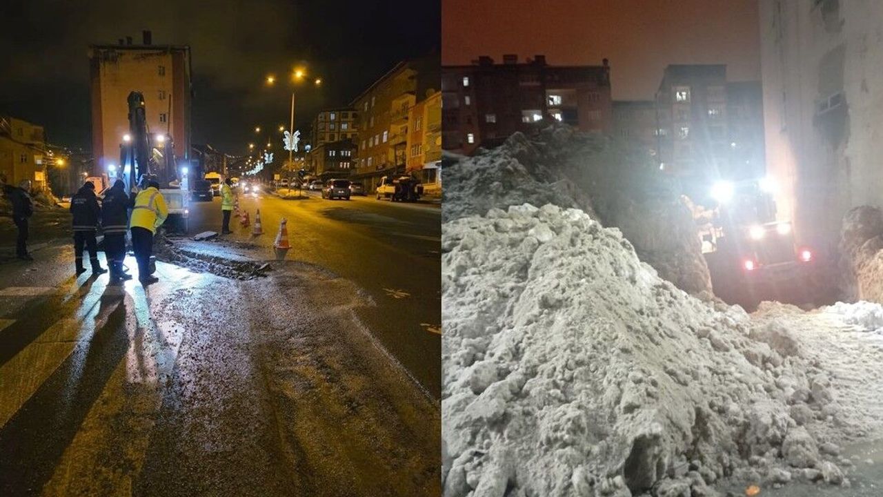 Kış mevsiminin en sert dönemlerinden birini yaşayan kentte, vatandaşların günlük yaşamının aksamaması için ekipler vardiyalı sistemle gece gündüz görev yapıyor.