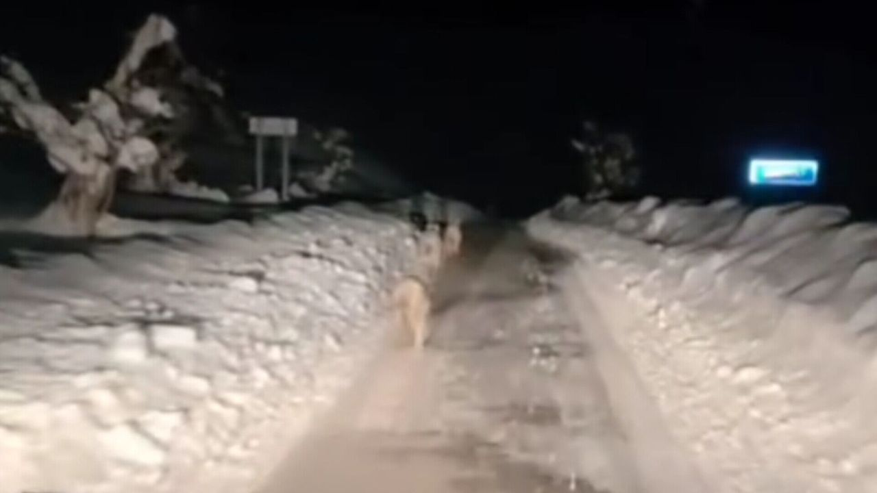 Edinilen bilgilere göre, yol üzerinde aniden beliren kurt sürüsü bir süre karla kaplı yolda aracın önünden koşarak ilerledi. Ekipler, herhangi bir risk oluşturmamak adına kontrollü şekilde ilerlerken, kurtlar bir süre sonra yol kenarındaki araziye yönelerek gözden kayboldu.