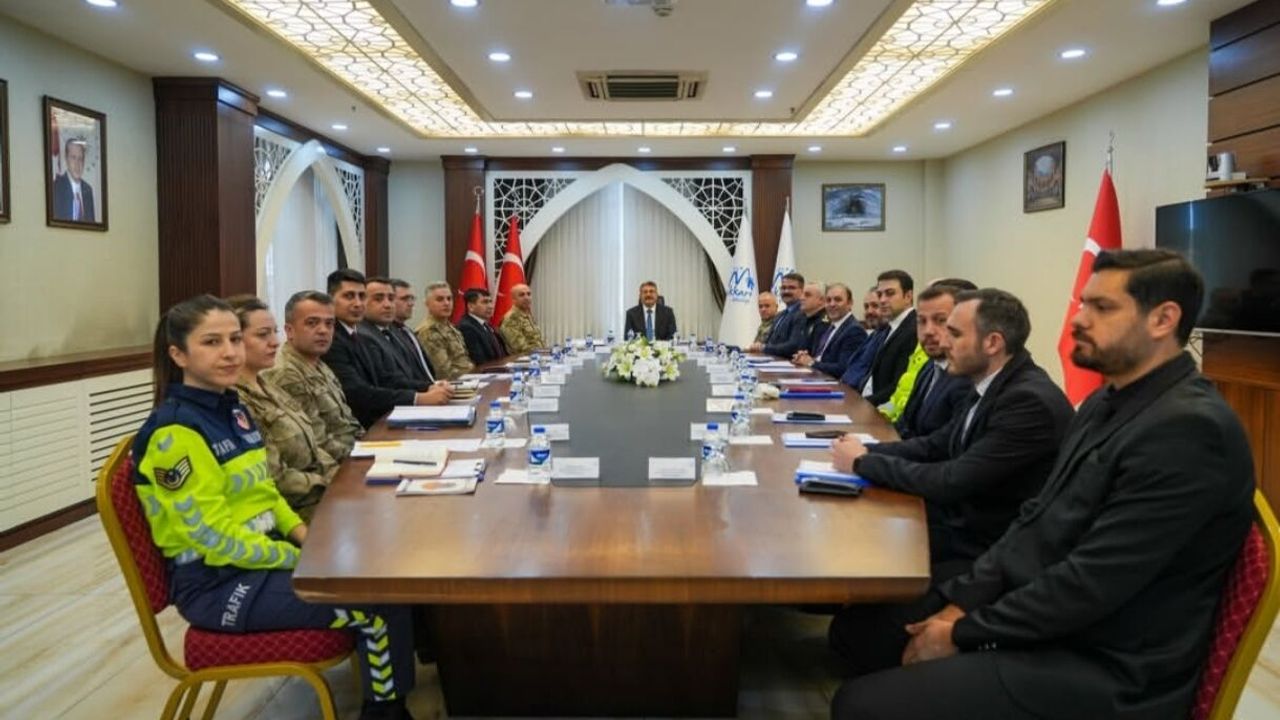 Hakkâri Valisi Ali Çelik başkanlığında düzenlenen Asayiş Toplantısı’nda, il genelindeki güvenlik verileri değerlendirildi. Toplantıya İl Jandarma Komutanı Tuğgeneral Cafer Öz, İl Emniyet Müdürü Attila Ayata, İl Göç Müdürü Aykut Alptekin ile ilgili birim amirleri katıldı.