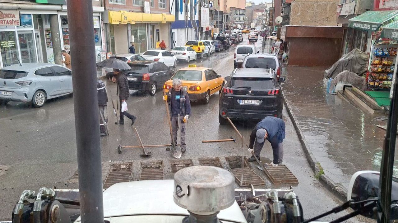 Hakkari Belediyesi ekipler, yağmurun etkisini sürdürdüğü kentte tıkanan ızgaraları açmak için çalışma başlattı.