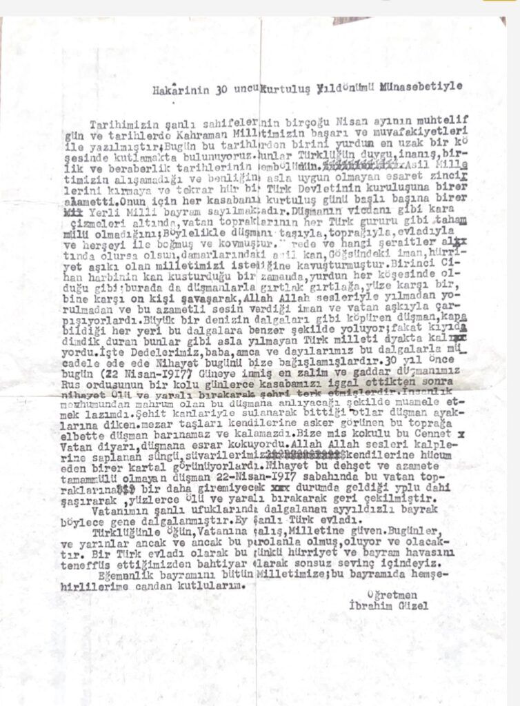 Bağış kapsamında, İbrahim Hatipoğlu’nun Hakkâri’nin kurtuluşunun 30. yıl dönümü dolayısıyla 1947 yılında kutlama programında yaptığı konuşmanın orijinal metni de gün yüzüne çıktı. Tarihî belge niteliği taşıyan bu metin, dönemin ruhunu ve Hakkâri’nin kültürel birikimini yansıtması açısından büyük önem taşıyor.