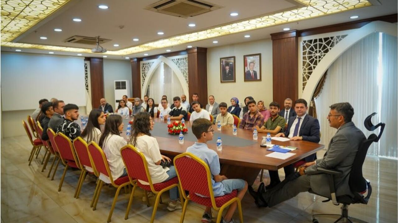 Hakkâri Valisi Ali Çelik, İl Milli Eğitim Müdürü Nurettin Yılmaz ile birlikte Liselere Geçiş Sınavı (LGS) ve Yükseköğretim Kurumları Sınavı’nda (YKS) dereceye girerek şehrimizin gururu olan öğrencileri makamında misafir etti.