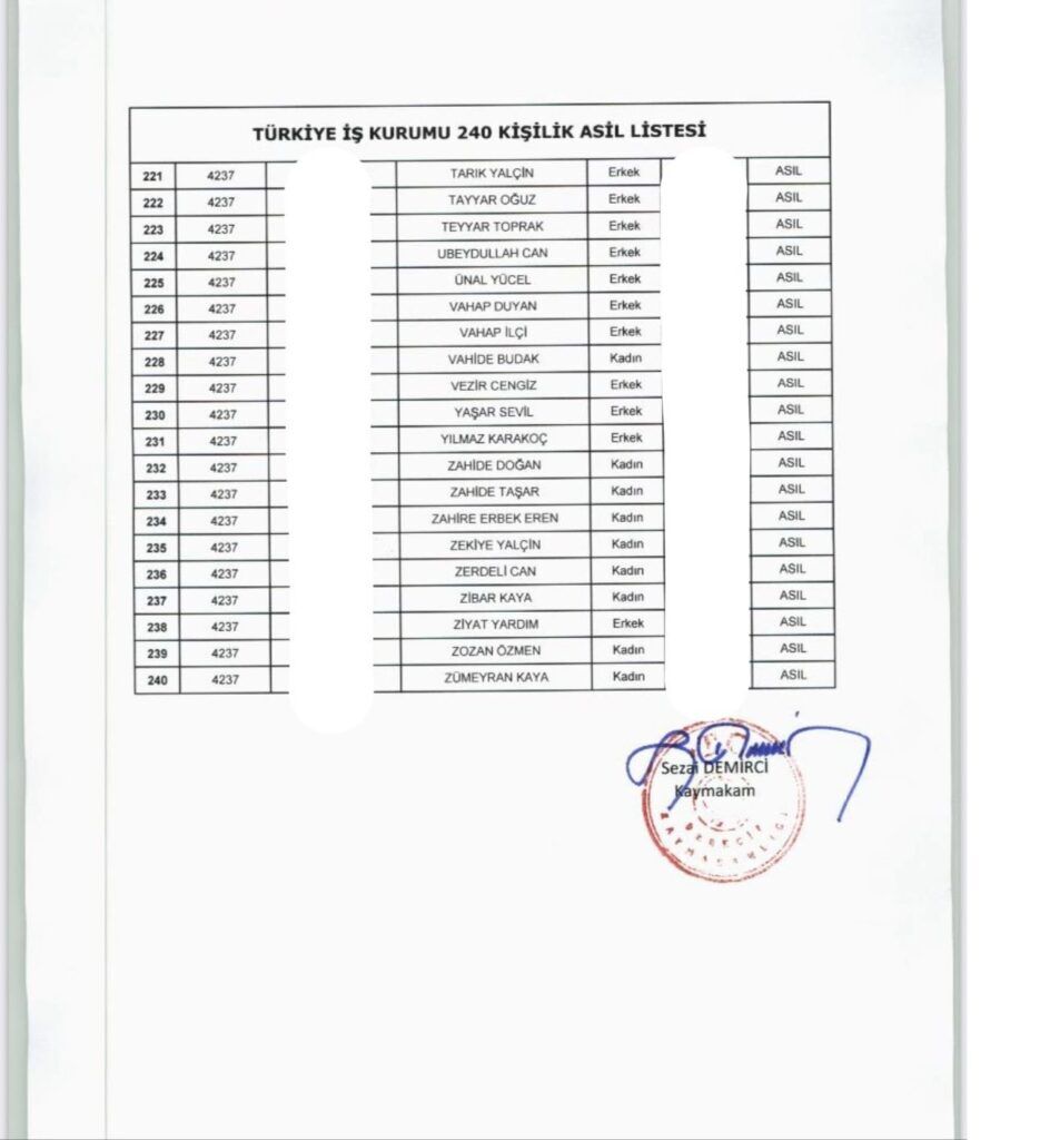 Asil listede ismi yer alan adayların, 07 Mart 2025 Cuma günü saat 17:00’ye kadar Derecik Kaymakamlığı İlçe Yazı İşleri Müdürlüğü’ne gerekli belgeleri teslim etmeleri gerekiyor.