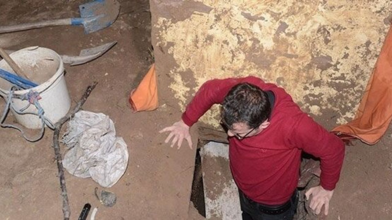 Olay yerinde ve araçta yapılan aramada, kazıda kullanılan malzemeler ele geçirildi.