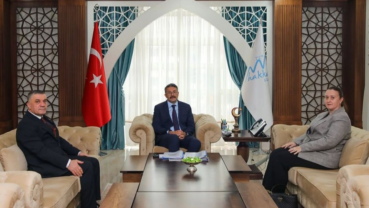 Meteoroloji 14. Bölge Müdürü Derya Ergün ve Hakkari İl Meteoroloji Müdürü Ahmet Yıldırım, Hakkari Valisi Ali Çelik’i makamında ziyaret etti.