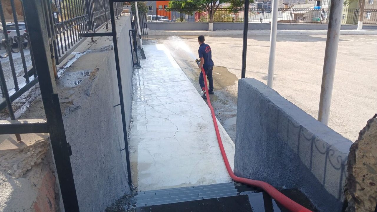 Hakkari Belediyesi'ne bağlı İtfaiye Müdürlüğü ekipleri 2024-2025 eğitim öğretim yılı öncesi ve sonrasında okul çevresi ve bahçelerinde başlattığı yıkama çalışmaları sürüyor.
