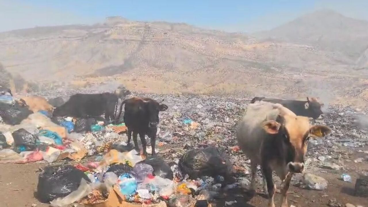 Çöplüğe yakın bir yerleşim olmamasına rağmen, sabahları kontrolsüz şekilde salınan hayvanlar yaklaşık 10 kilometre yürüyerek çöp alanına ulaşıyor. Açlıkla baş başa kalan inekler, yiyecek bulamadıkları için çöplerin arasında plastik poşet, karton ve ambalaj atıklarını yemek zorunda kalıyor.