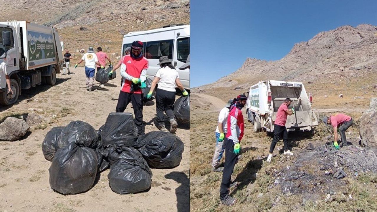Hakkari Yüksekova Esendere Belediye Başkanı Dırbaz Büyüksu'nun girişimleriyle, belediye ekipleri 3.500 rakımlı Cilo Dağları Sat Buzul Gölleri bölgesinde çevre temizliği gerçekleştirdi.