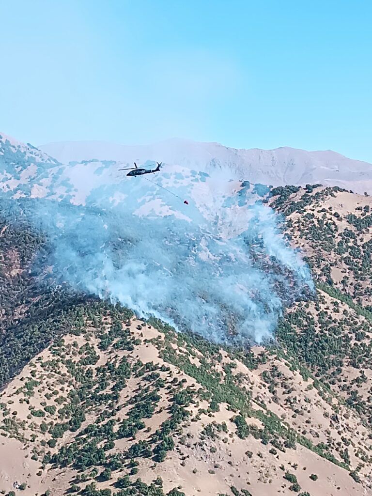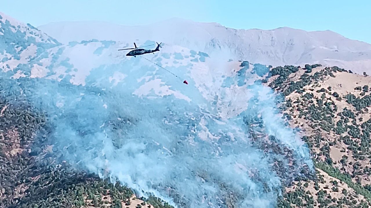 Sabahın ilk ışıklarıyla birlikte Orman Genel Müdürlüğü’nden bölgeye sevk edilen yangın söndürme helikopteri, havadan soğutma çalışmalarına başladı. Karadan ekiplerin müdahalesiyle birlikte, helikopterin desteği yangının yayılmasını engelledi.
