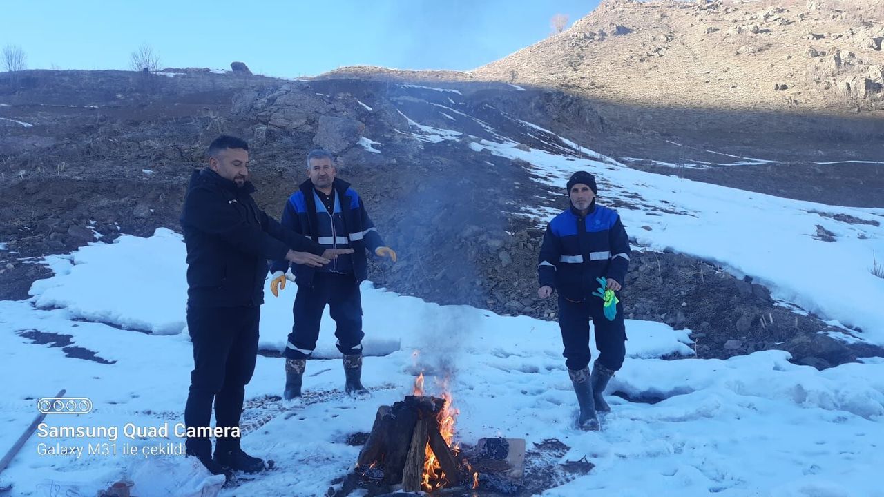 Belediye Su ve Kanalizasyon İşleri Müdürü Davut Güldal ve beraberindeki ekipler soğuklardan korunmak için ateş yakarak bir taraftan ısındılar diğer taraftan ise arızayı gidermeye çalıştılar. Kente sağlıklı su verilmesi için Otluca Köyü Uyanık Mahallesindeki çalışmalar devam ediyor.