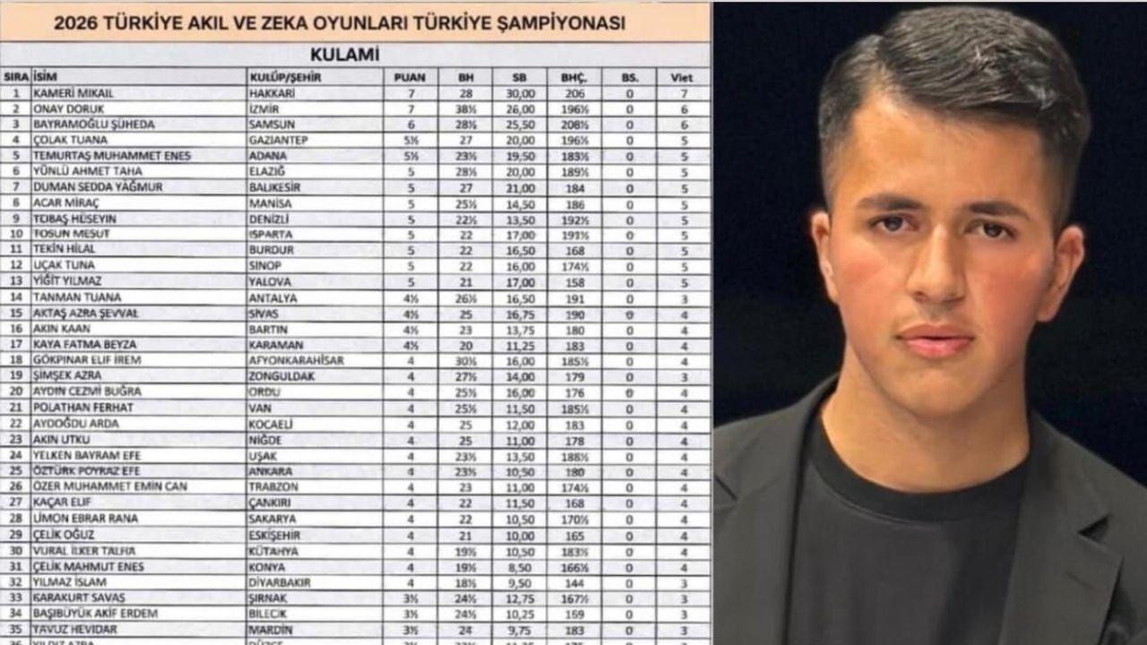Türkiye Akıl ve Zeka Oyunları Federasyonu tarafından düzenlenen Türkiye Akıl ve Zeka Oyunları Turnuvası’nda büyük bir başarıya imza atan Hakkâri’nin Yüksekova ilçesine bağlı Esendere beldesinden, Özel Kanıt Koleji öğrencisi Mikail Kameri, Türkiye birincisi olarak ilimize ve beldemize büyük bir gurur yaşattı.