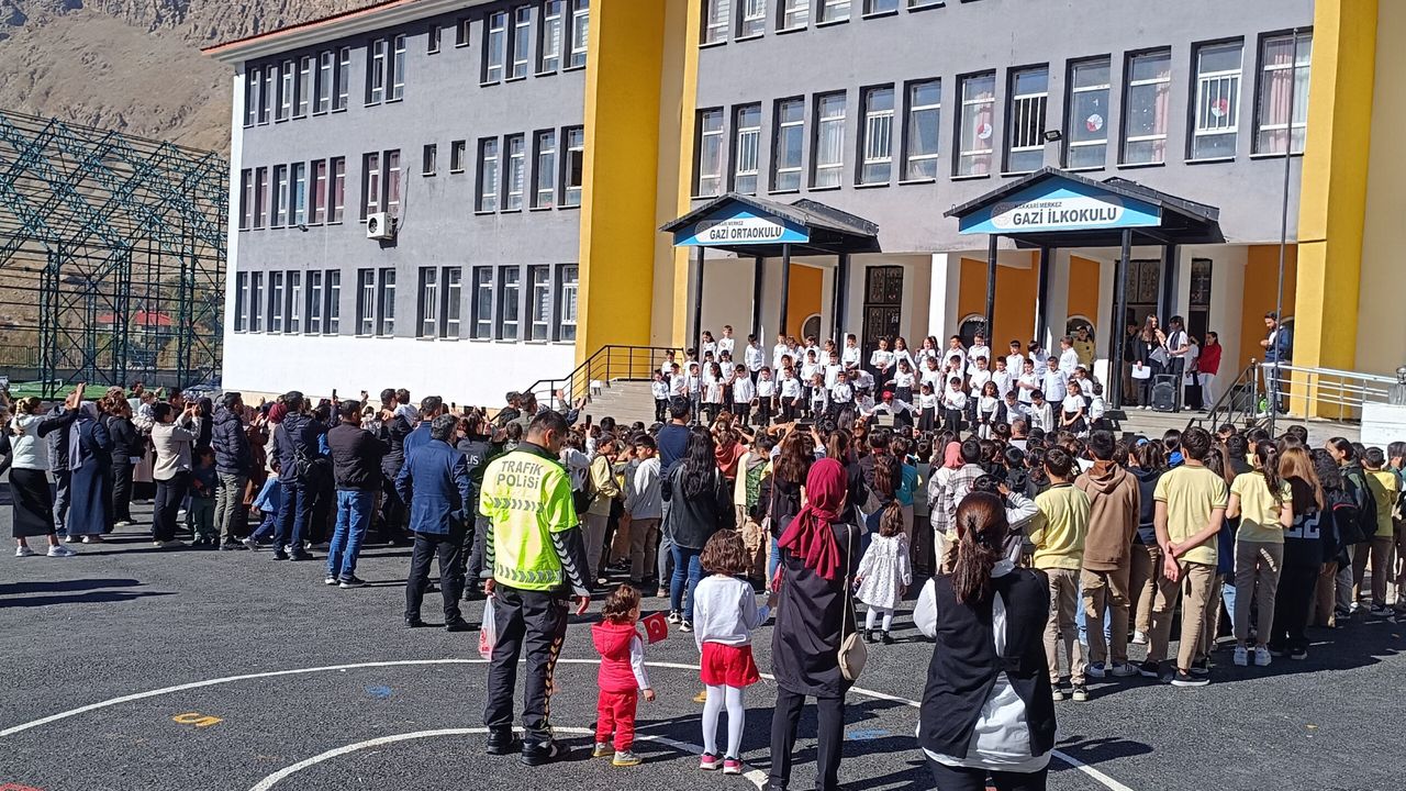 Cumhuriyet’in 102. yılı, Hakkari Gazi Ortaokulu ve İlkokulunda büyük bir coşkuyla kutlandı. 29 Ekim Cumhuriyet Bayramı etkinlikleri kapsamında okul bahçesinde düzenlenen programda hem öğrenciler hem de veliler unutulmaz anlar yaşadı.
