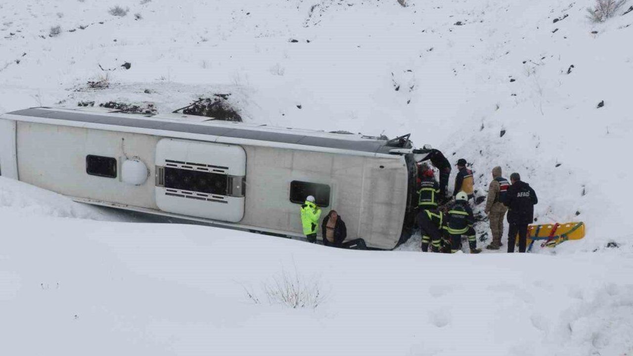 Erzincan'da yolcu otobüsünün şarampole devrilmesi sonucu ilk bilgilere göre 21 yolcu yaralandı.