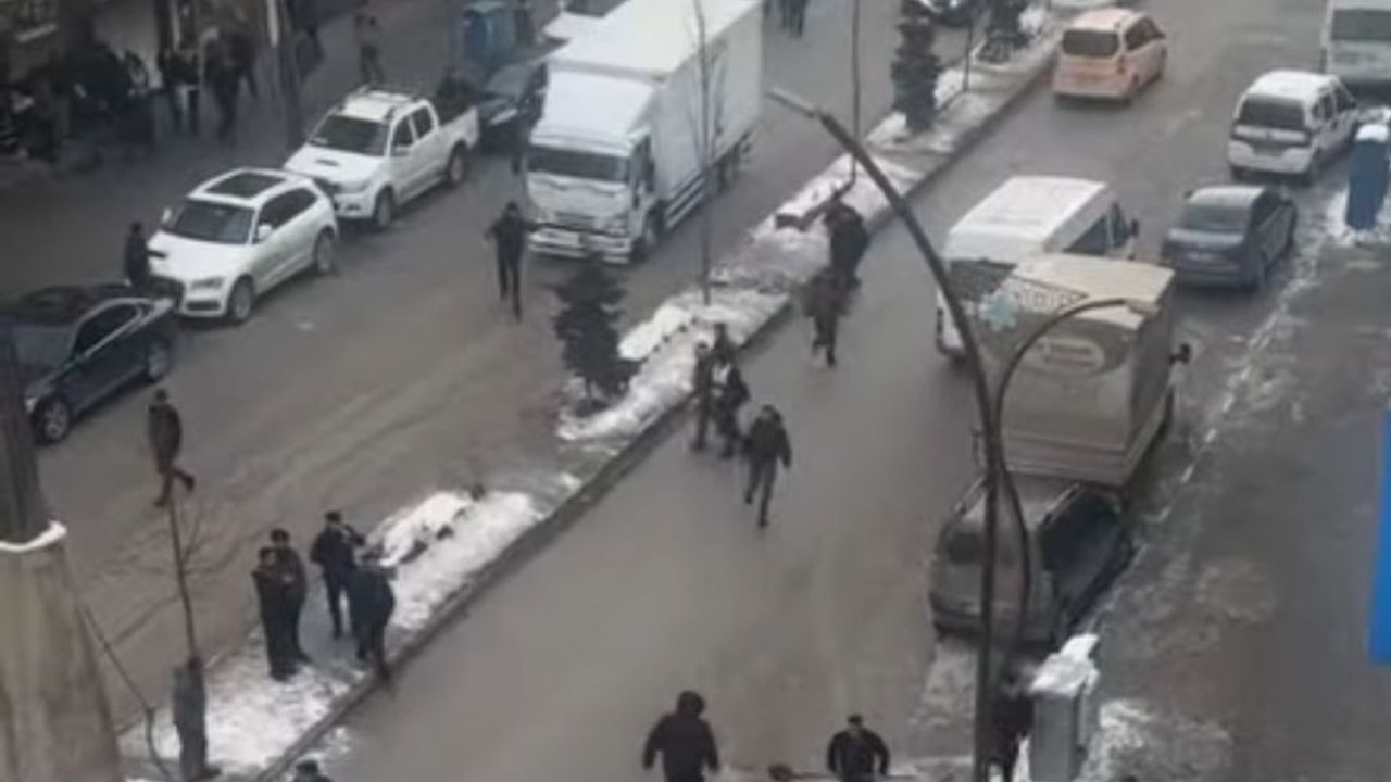 Hakkari'nin Yüksekova ilçesinde iki grup arasında çıkan tartışma, kısa sürede büyüyerek taşlı ve sopalı kavgaya dönüştü. Olay yerine sevk edilen polis ekipleri, kalabalığı dağıtmak için plastik mermi ve biber gazı kullanarak müdahalede bulundu.