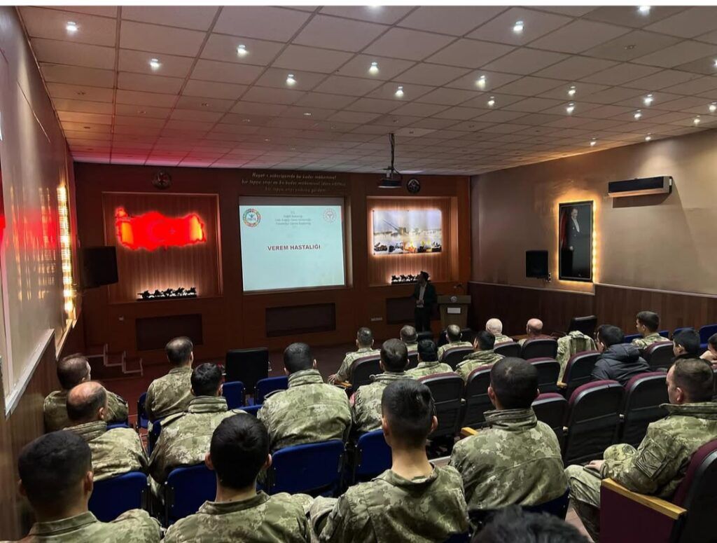 Hakkari İl Sağlık Müdürlüğü bünyesinde görev yapan Yüksekova İlçe Sağlık Müdürü Dr. Fırat Aren öncülüğünde, Yüksekova 3. Piyade Tugay Komutanlığı’nda tüberküloz hastalığına yönelik farkındalık ve bilgilendirme eğitimi düzenlendi. Eğitimde, hastalığın bulaşma yolları, korunma yöntemleri ve erken teşhisin önemi katılımcılara detaylı bir şekilde aktarıldı.