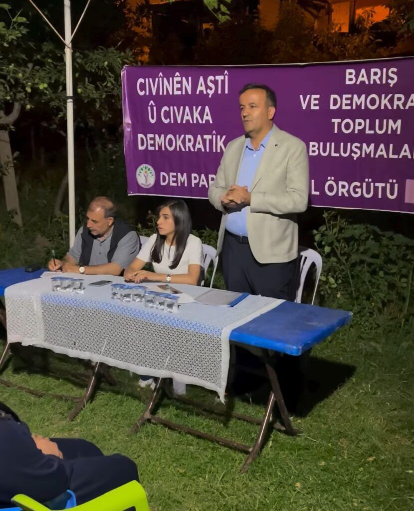 “Demokratik Toplum Buluşmaları” adı altında gerçekleştirilen bu programlarda, Abdullah Öcalan’ın “PKK artık tarihsel misyonunu tamamladı, silahlı mücadele değil demokratik siyaset esas alınmalı” mesajı halka anlatılıyor. Eş başkanlar bu mesajı, yeni bir çözüm sürecinin ve kalıcı barışın zemini olarak değerlendiriyor.